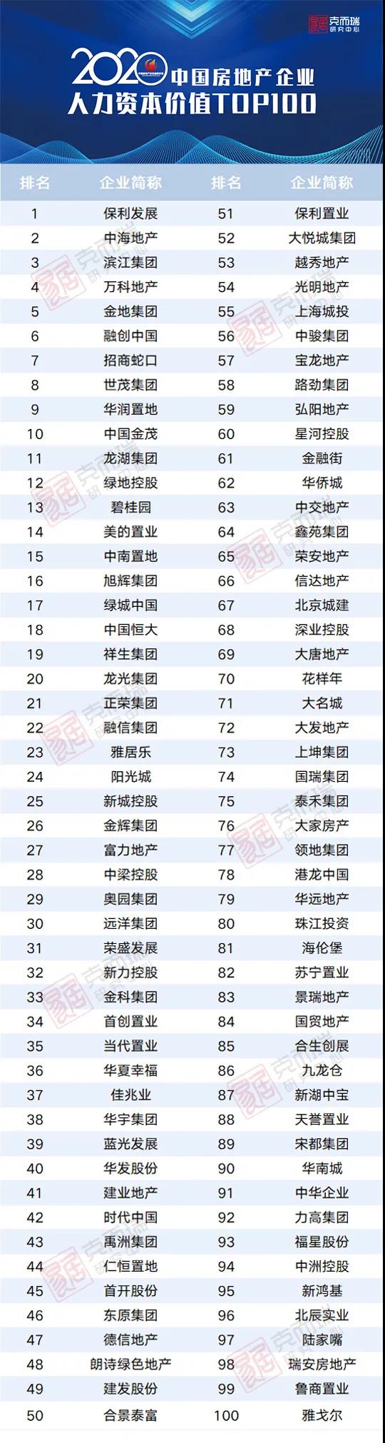 一、七成百强房企入围人力资本TOP100,国企、央企表现突出
