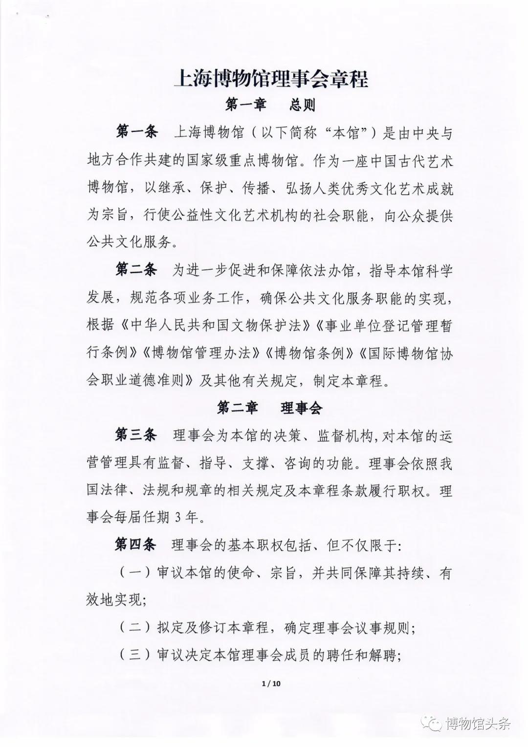 上海博物馆是国内最早开展法人治理结构建设工作的博物馆之一,多年来始终谨慎研究、积极探索。新成立的上海博物馆第一届理事会在市委组织部、市委宣传部、市文化和旅游局的支持与指导下,甄选11名热心社会公益,热爱文博事业的行业专家、社会贤达作为理事会成员:上海大学党委副书记、纪委书记段勇担任理事长;上海博物馆馆长杨志刚担任副理事长;旧金山亚洲艺术博物馆馆长许杰,全国政协常委、球王会体育在线董事局主席许荣茂,上海博物馆党委书记汤世芬,上海国际问题研究院学术委员会主任、博士生导师杨洁勉,上海报业集团党委副书记、总经理、副社长陈启伟,上海博物馆原馆长陈燮君,复旦大学中文系教授、博士生导师汪涌豪,全国人大代表曹可凡,中国史学会副会长、上海社会科学院研究员熊月之等9人担任理事;上海博物馆党委书记汤世芬兼任秘书长,上海博物馆办公室主任夏蓓蓓担任副秘书长,由上海市文化和旅游局副局长褚晓波为理事会成员们颁发聘书。会议审议并通过了《上海博物馆理事会章程》。