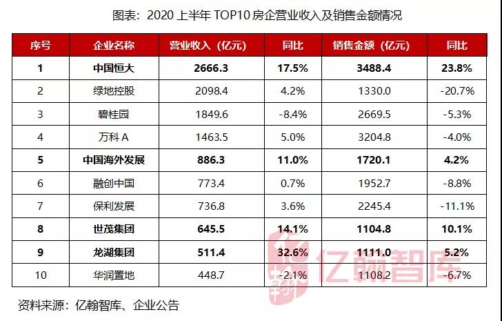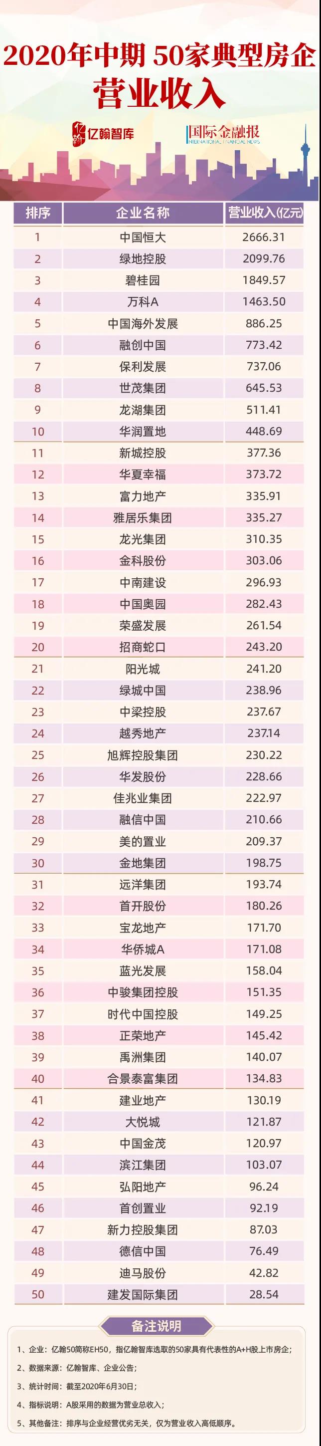 由此,亿翰智库联合《国际金融报》发布《2020年中期50家典型房企营业收入》研究成果。