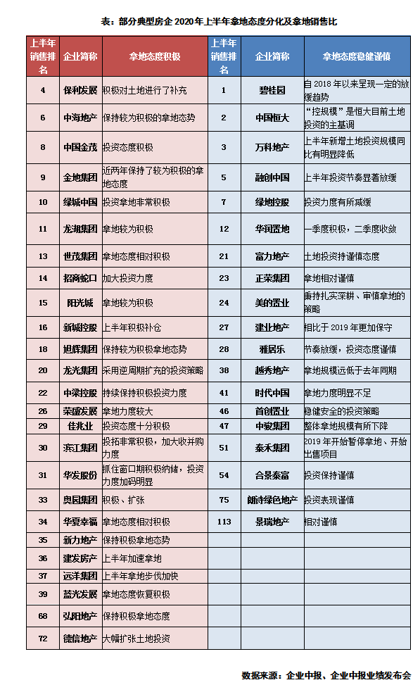 从发布中报的50家典型房企中报来看,二季度土地市场窗口期期间,投资分化显著,逆市拿地与谨慎投资的房企各占五成左右。