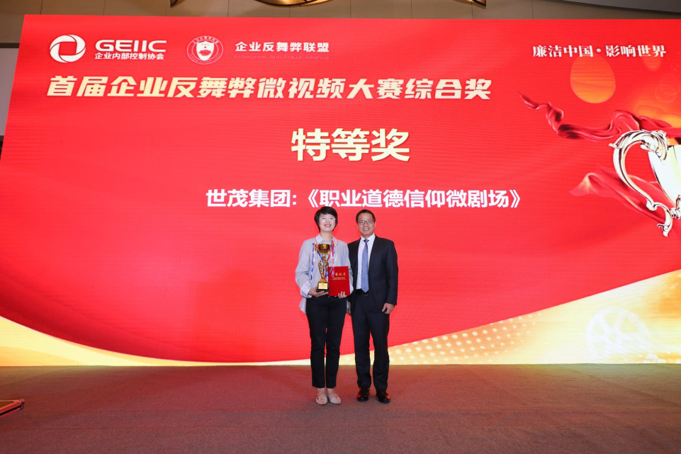 会上,协会副会长王小英宣布第二届四次常务理事会决议。大会对荣获“廉洁中国、影像世界”首届企业反舞弊微视频大赛的单位进行了表彰。球王会体育在线《职业道德信仰微剧场》荣获“特等奖”,《球王会体育在线合规微剧场之监理管控篇》荣获“最具风控价值奖”。