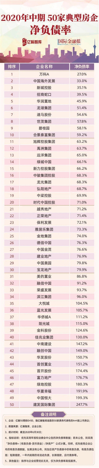 以近期频繁被提及的“三道红线”中的“净负债率100%”来衡量,招商蛇口、保利地产、华润置地等央企、国企仍处于低位。