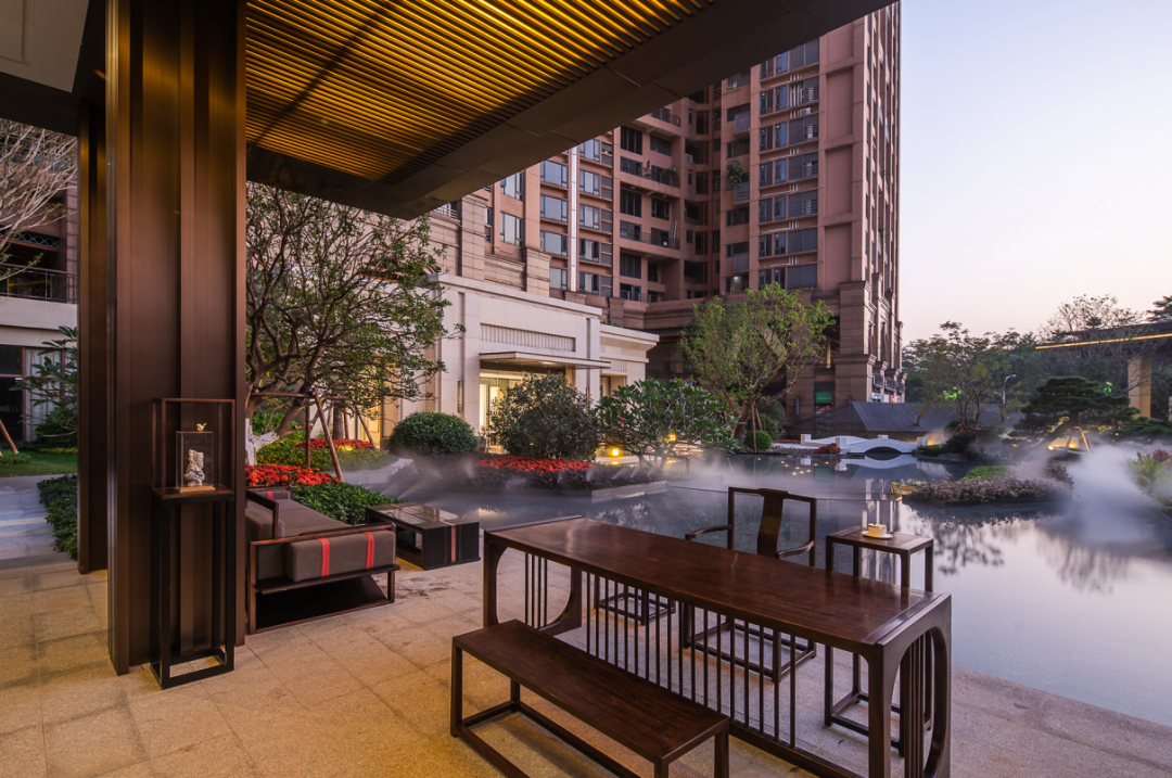 当你把飞瀑、山石、高梁、亭台楼阁都搬进去,让岭南风景画潜入一个当代都会最核心的位置,让你进入回家的情绪之前,这里就是那个缓和过渡空间。让大门有仪式感、园林有情趣感、归家有私密感,层层传递。