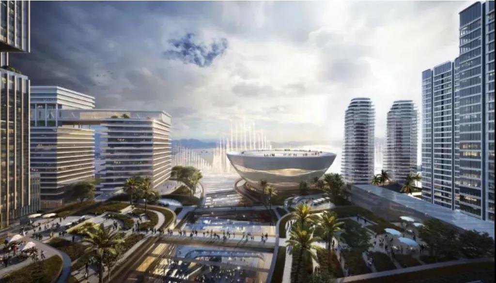 将建设成一个主要涵盖综合交通、滨海美学商业、灯光秀、5大酒店集群、2个会展中心、国际办公和酒店式办公等全能业态的超级综合体。