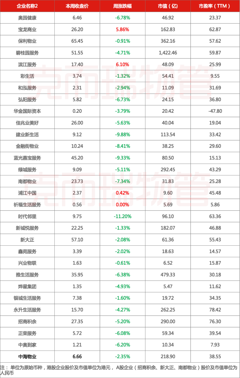 10月22日,第一服务控股(02107.HK)正式登陆港交所,公司拟发售2.5亿股,发售价2.4港元,每手2500股,所得款项净额约5.437亿港元,成为了港股市场上第29家上市物企。