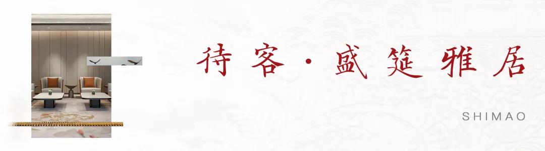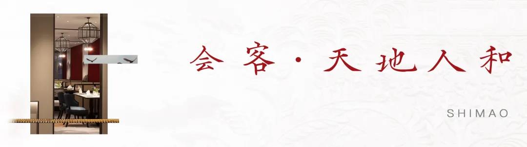 左侧中式宴会区呈众星拱月布局,中性主色调下用大块红色来渲染庆典氛围,夜宴等主题装饰画带出隆重,孔雀蓝抱枕、瓷器等局部点缀带出优雅轻奢,遵循五行用色理念。
