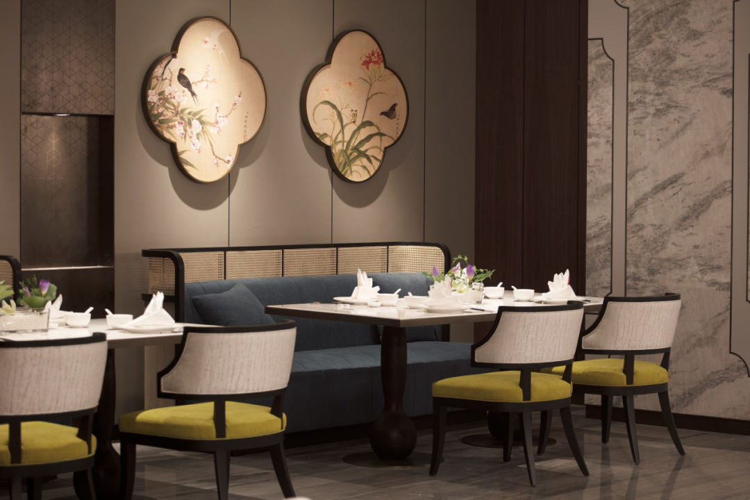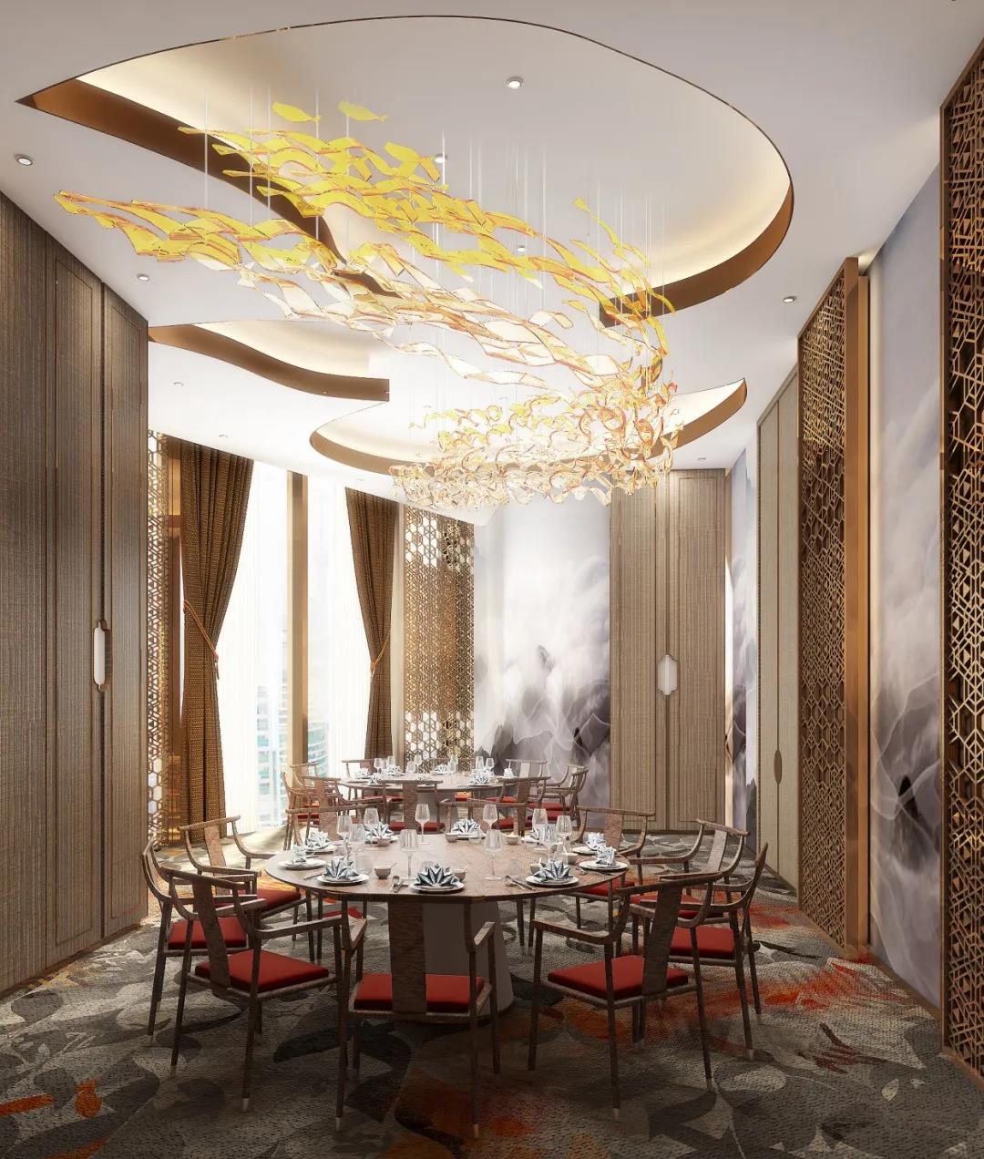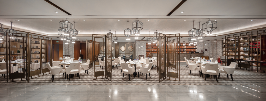 艾美轩是酒店主推的中式宴会餐厅,多样化经营模式带来多元化设计风格。宽敞过道与活动屏风将餐厅一分为二,皇家礼宴与海派风情,邂逅在同一时空,颇具戏剧美感。
