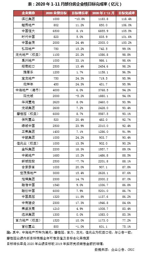 部分房企完成率低于85%