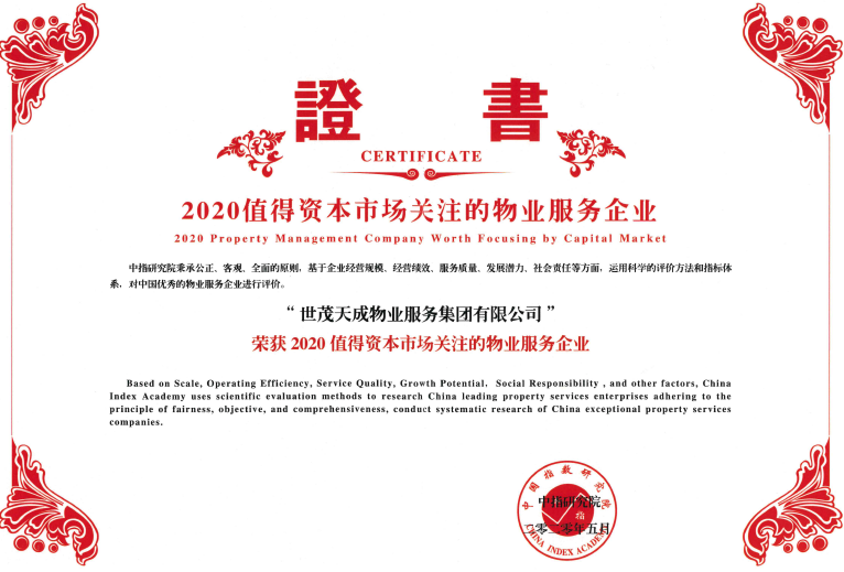 “2020值得资本市场关注的物业服务企业”称号