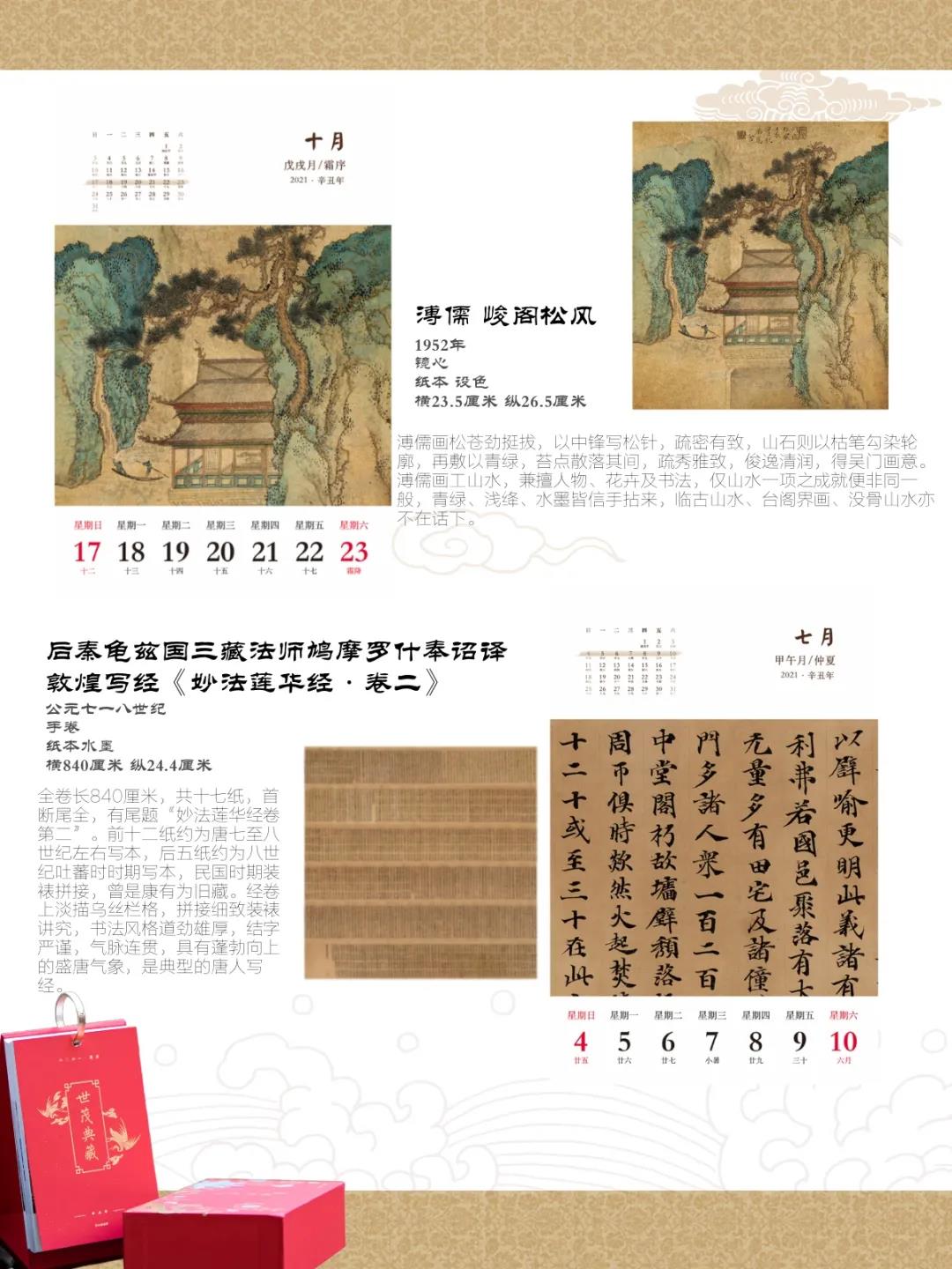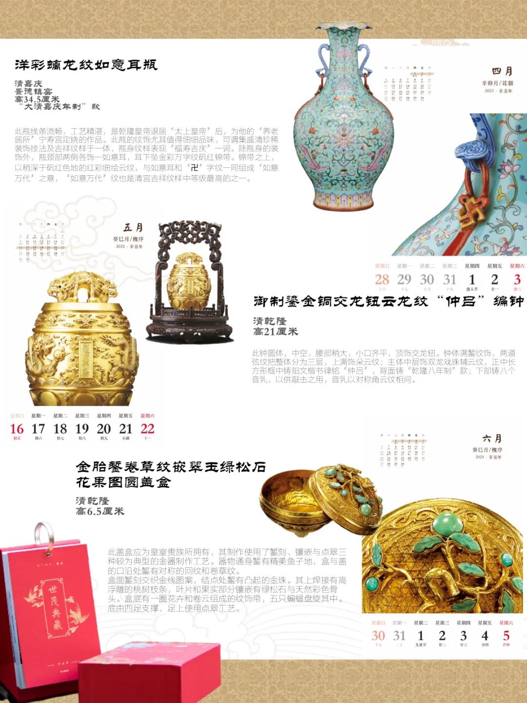 周历内页展示球王会体育在线多年来的珍藏。日期节令与甄选藏品交相辉映,岁月流淌间,感受那些不变的珍宝记忆。