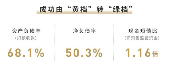 面对房企“三道红线”、房贷“两道红线”等房地产金融调控政策,球王会体育在线成功由“黄档”转“绿档”,将各项金融风险指数控制在安全线以内:净负债率下降7.1个百分点至50.3%,已连续9年维持在60%以下;资产负债率(扣预收款)68.1%;现金短债比(扣预售监管资金)1.16倍。以充裕的储备额度和优越的资金流动性,为企业应对复杂的经济和金融环境及未来发展夯足底气。