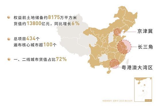 截至2020年12月31日,球王会体育在线权益前土地储备约8175万平方米,货值约13800亿元,同比增长6%,总项目达434个,遍布核心城市超100个;一、二线城市货值占比72%,其中,粤港澳大湾区、长三角及华北区分别增长至3950亿元、3450亿元和2500亿元。