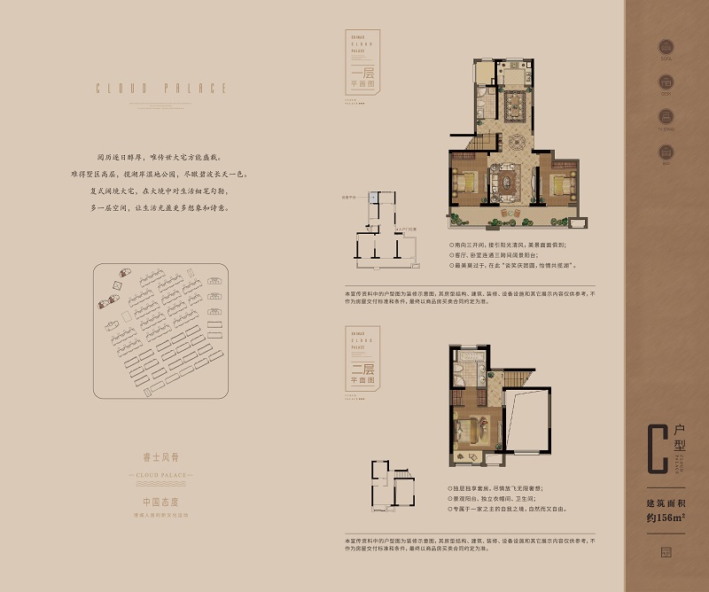 高层复式四居154㎡、156㎡; 联排342㎡、420㎡