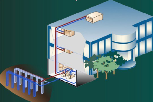 同样作为清洁的可再生能源,地源热泵空调系统利用大地深处冬暖夏凉,温度相对稳定的特点,通过地下埋管封闭循环水进行热量交换。