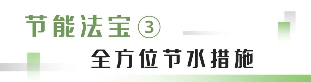 在节水方面,通过海绵和绿建设计,完成中水回收、雨水回收与处理,提供灌溉、清洁的类型用水。