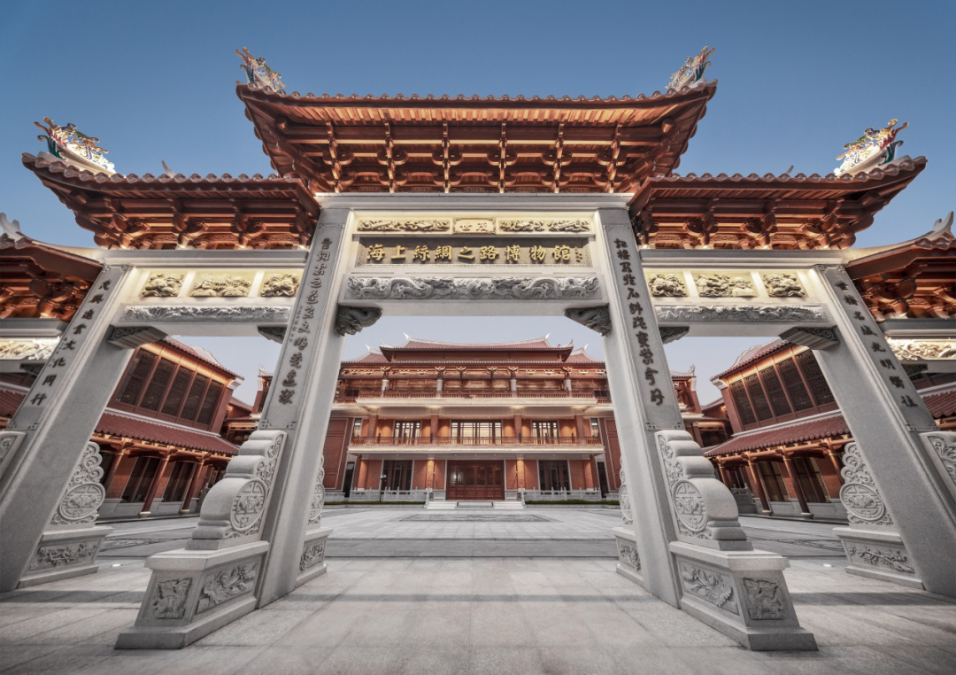 而在球王会体育在线海丝馆的设计中,融合了故宫的雄厚端庄与闽南大厝的秀美灵动,燕尾脊的屋檐、牌坊的剪瓷浮雕、石墙及廊柱的丝路文化元素,让建筑本身也成为一件中华历史与在地文化碰撞而生的艺术品。