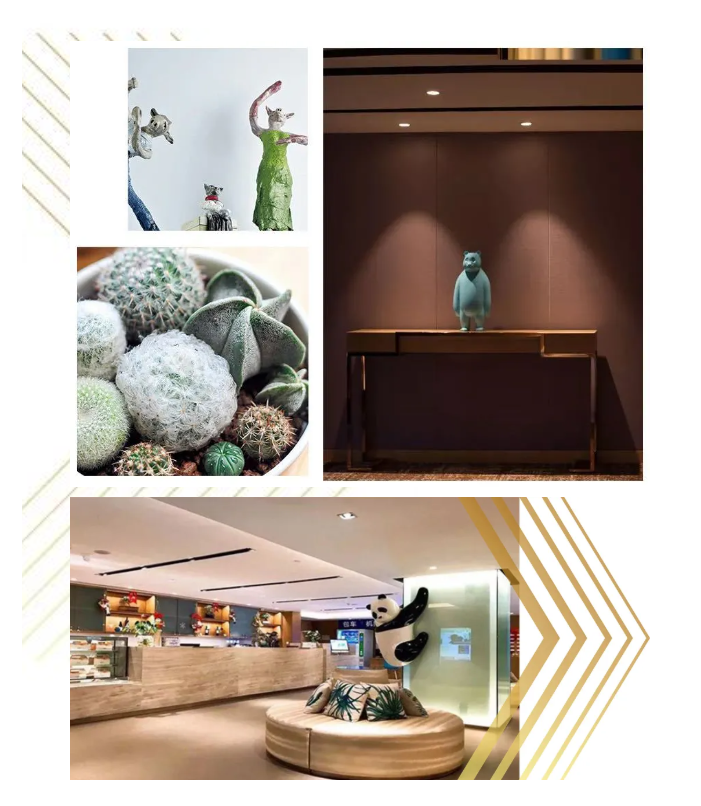 睿选携手中国新锐艺术家,采用他们极富当地文化特色的艺术作品,以别具一格的方式融入到酒店设计中,让城市文化与精神在此得到延伸;创意有趣的艺术装置,搞怪奇特的雕塑摆件等,充斥在酒店的每一个角落,让宾客看见灵感!