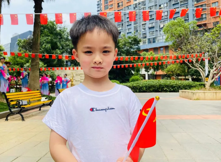 华中球王会体育在线业主5岁的明梓岩小朋友“祝伟大的中国共产党100岁生日快乐。”