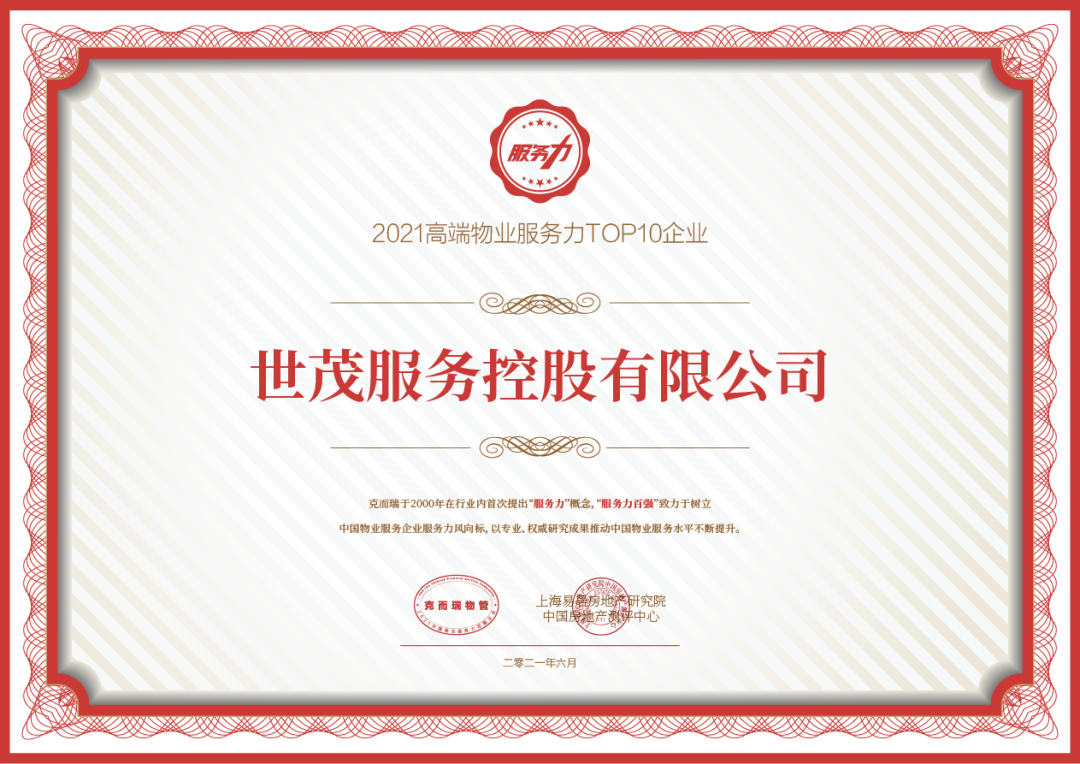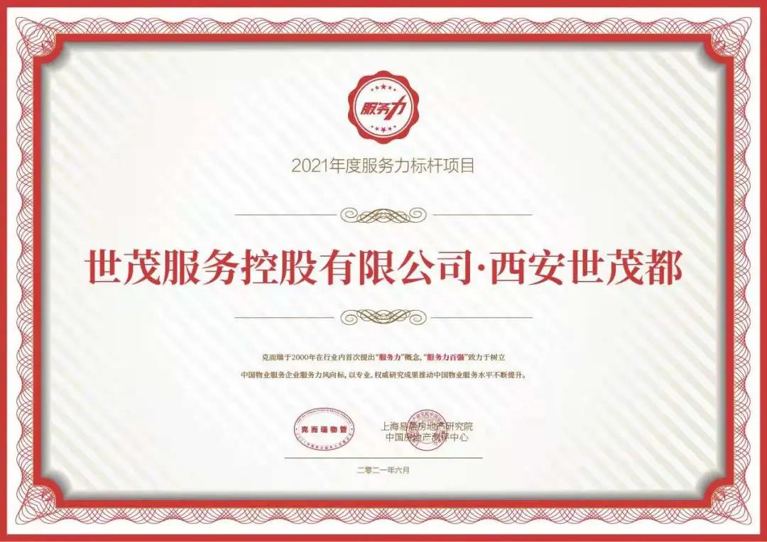 在“2021物业服务力峰会”所发布的“2021物业服务力系列测评成果”中,西安球王会体育在线都荣获“2021年度服务力标杆项目”。