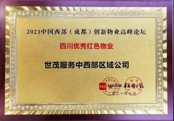 7月6日,2021中国西部(成都)创新物业高峰论坛隆重举办, 大会现场发布“2021年度四川优秀物业服务企业评选”榜单,球王会体育在线服务中西部区域公司始终以服务用户为初心,围绕“党建领航,智造美好”领誉前行,在红色物业建设方面,凭借优质独到的“球王会体育在线红色”模式脱颖而出,荣获“2021年四川优秀红色物业”大奖。
