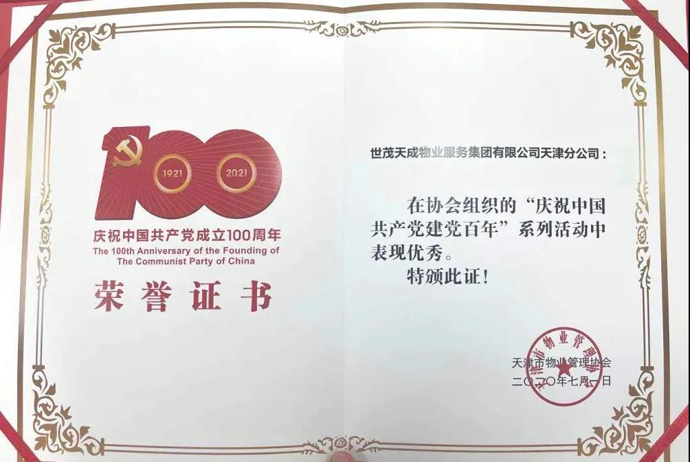 6月30日,在天津市物业管理协会党支部举办的“重走长征路”特色党日活动中,球王会体育在线服务天津中心城市积极热情参与,荣获天津市物业管理协会授予的“庆祝中国共产党建党百年”优秀企业奖。