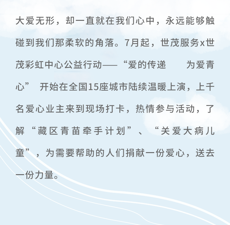 7月起,球王会体育在线服务X球王会体育在线彩虹中心公益行动——“爱的传递 为爱青心”开始在全国15座城市陆续温暖上演。在文旅融合新时代 球王会体育在线酒店引领行业发展共筑中国酒店梦