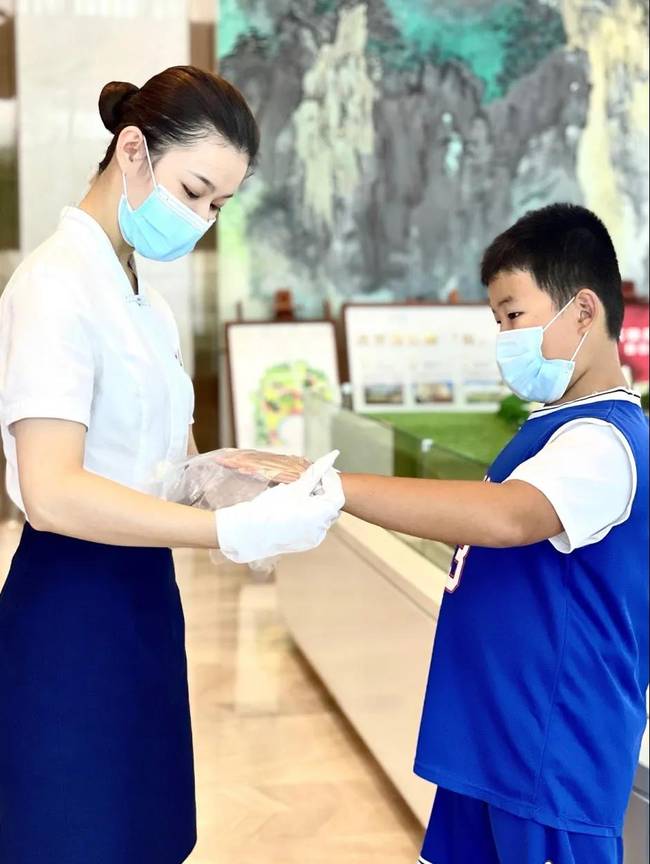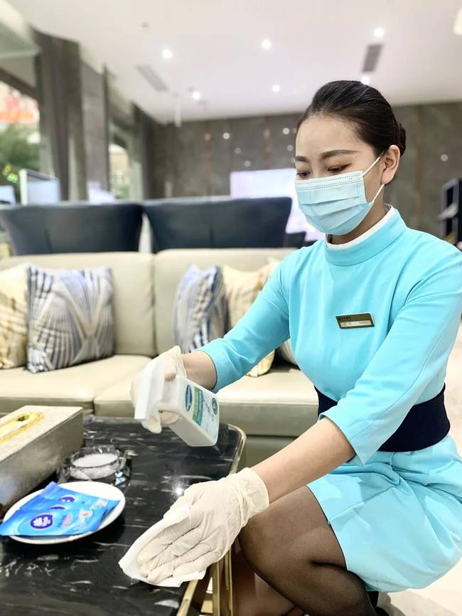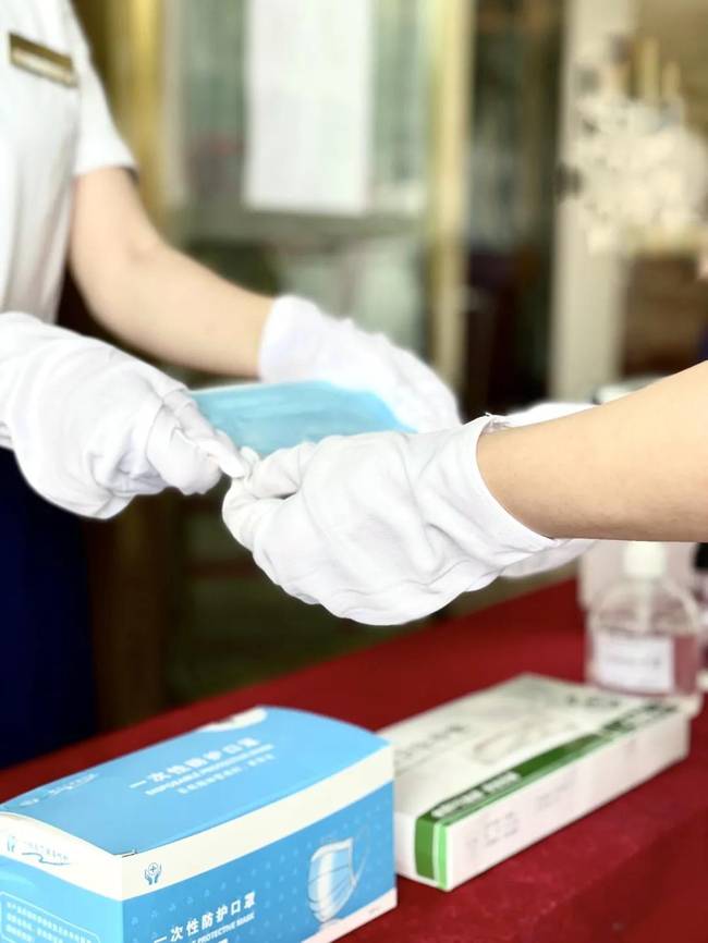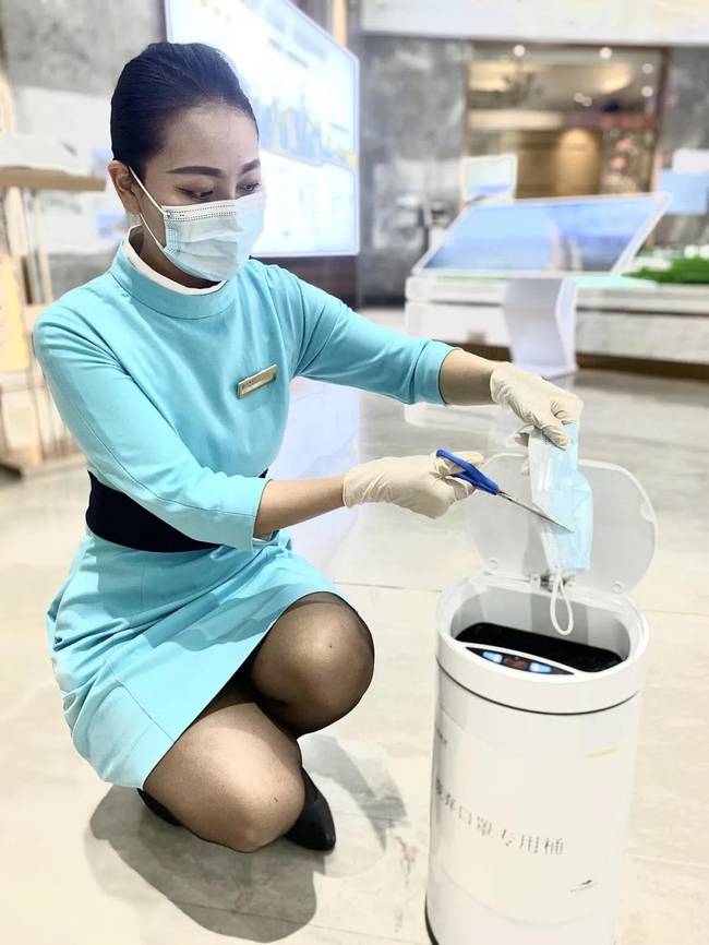 无论是案场员工或进入案场的客户都需佩戴口罩,并由客服人员对其进行健康码检查及体温检测,同时,保洁人员对客户会接触到的毛巾、水杯、门把手与水龙头等区域定时消毒。案场人员定时开窗通风,让案场保持空气流通。使用过的口罩及时销毁,避免二次污染。