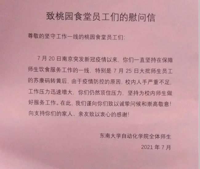 东南大学自动化学院师生送来的感谢信