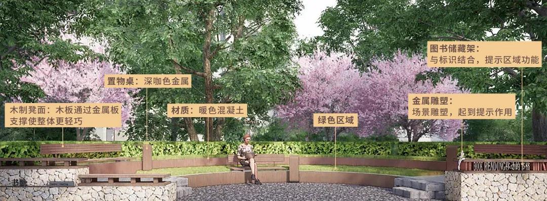 室外储藏书架兼顾二手书借阅以及交换工程,一方面促进业主的交往,另一方面能更有利于营造阅读氛围。