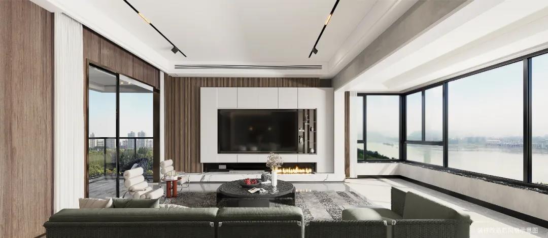 龙湖重庆有个大平层项目,在客厅做了双重景观视野,营造出了前江后院的感觉。