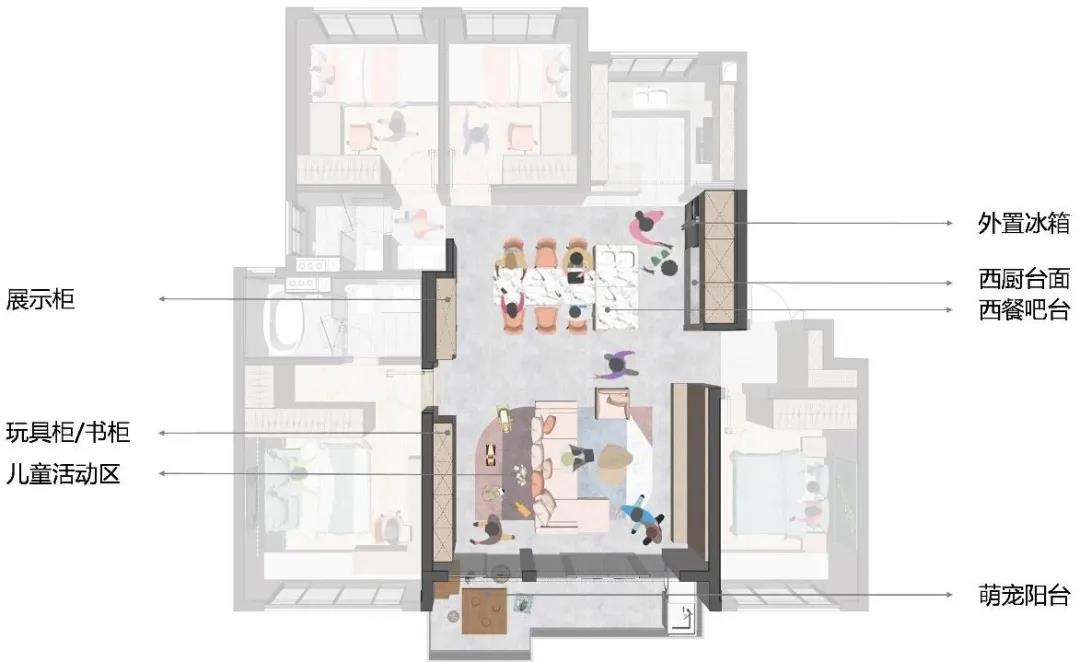 比如现在是三孩时代,有些人认为三孩家庭可以忽略不计,但有些房企或设计院已经开始研发三孩户型了,你做了别人不愿意做的细分市场,那这部分的客户是不是就归你了?比如已经有不少公司推出了三孩户型:
