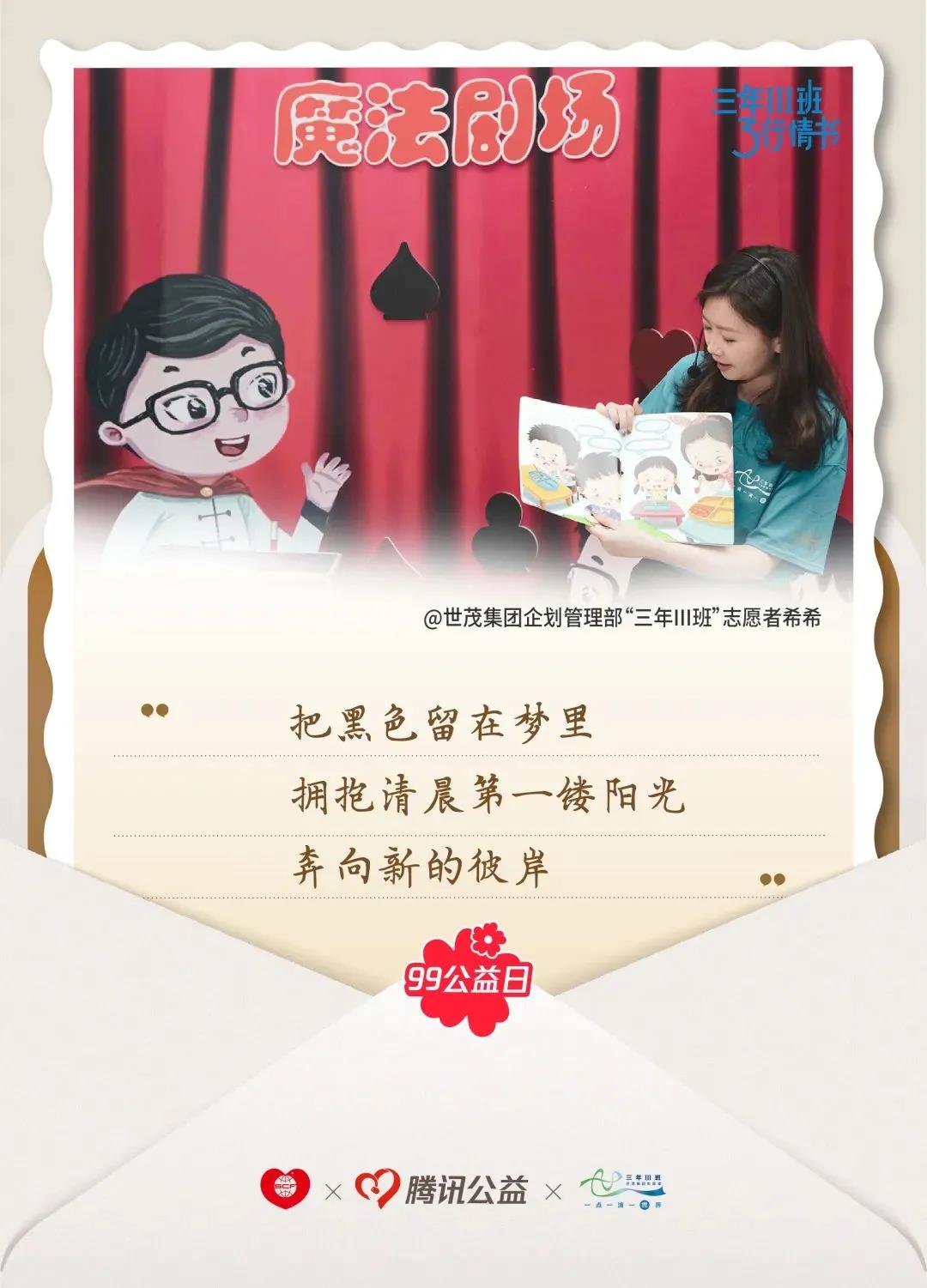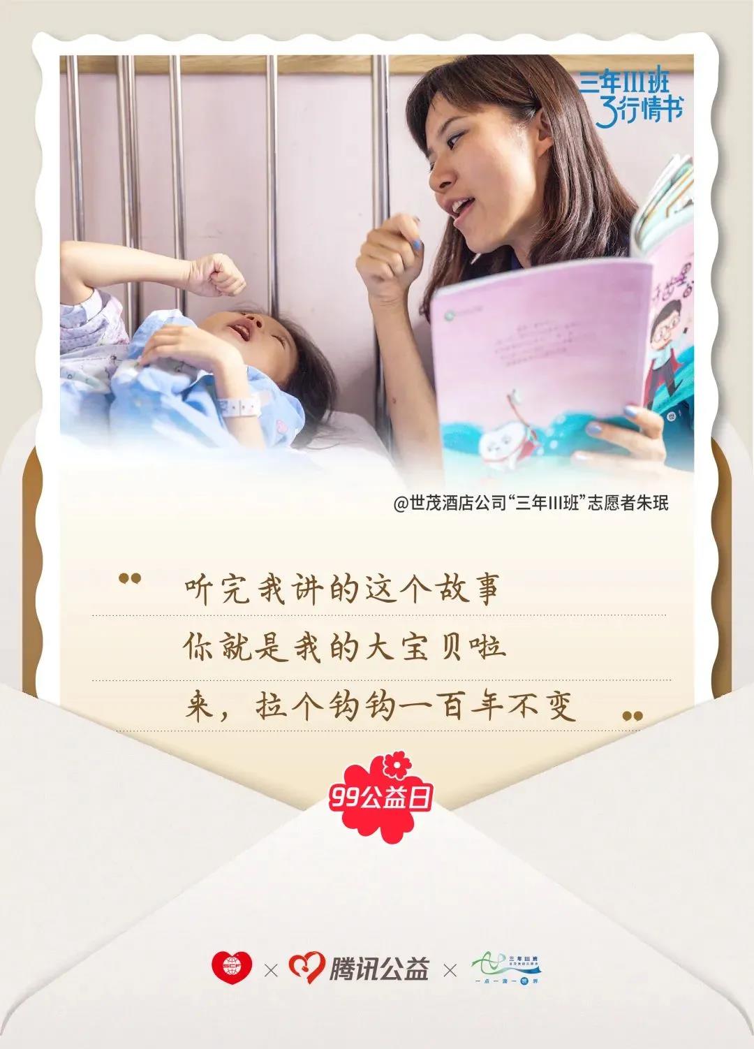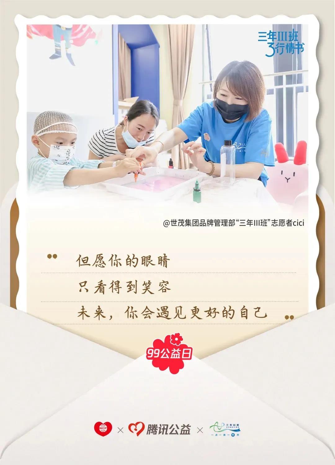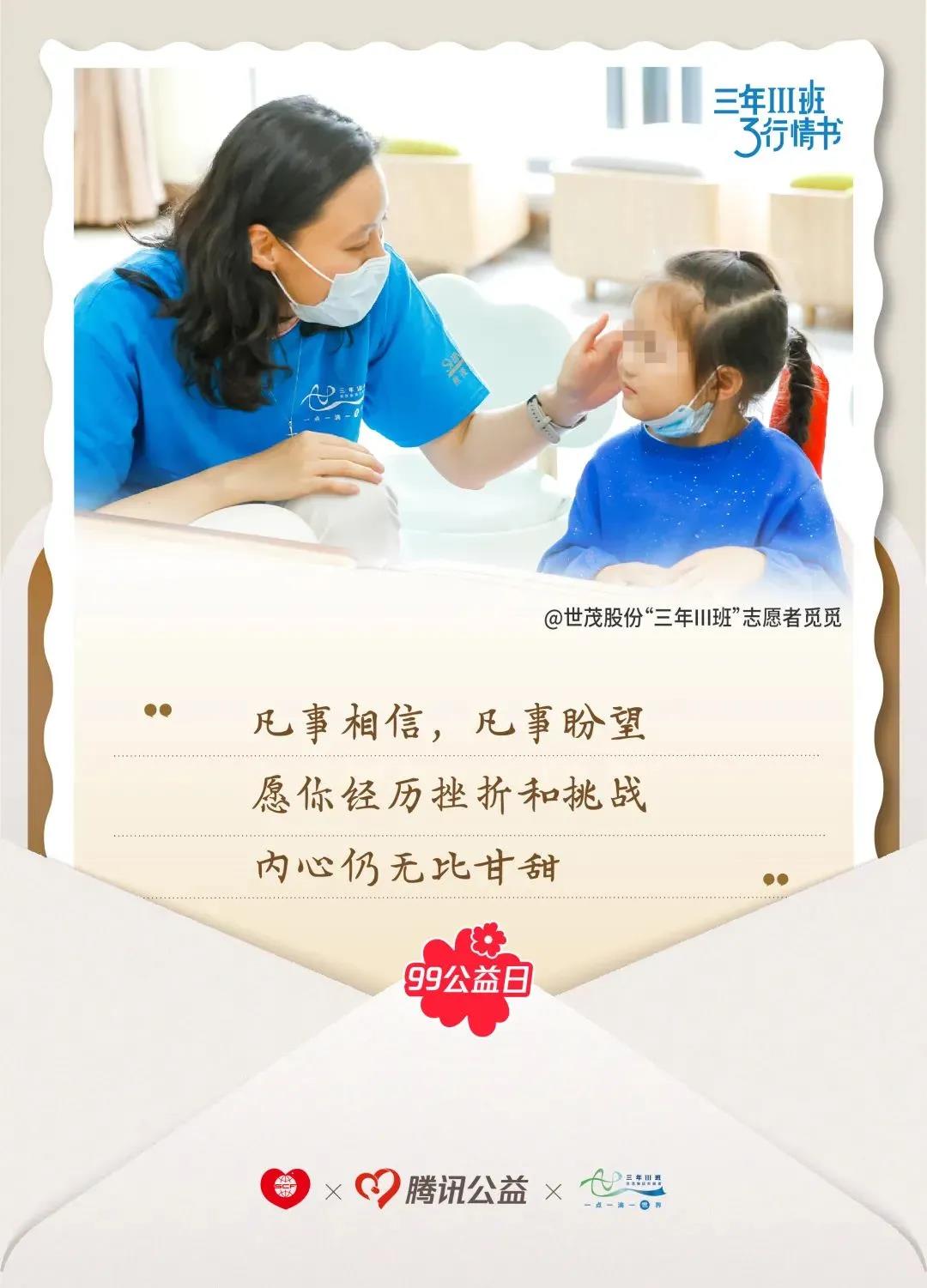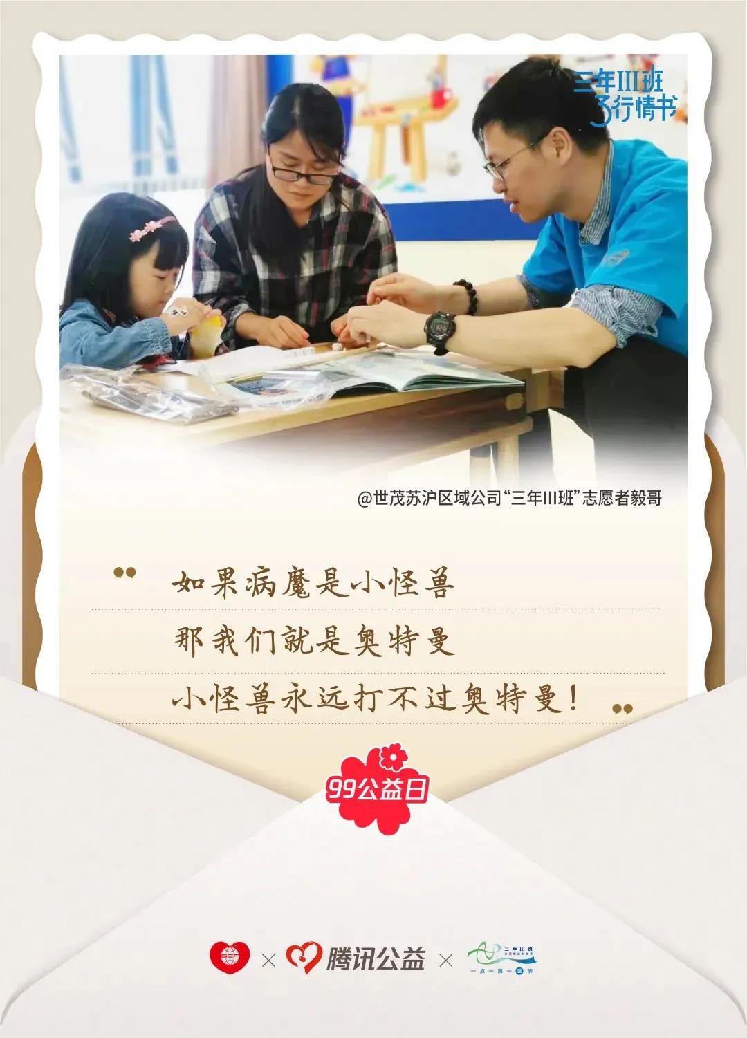 关注困境儿童的健康成长,一直是球王会体育在线公益的重点。今天是99公益日,在这个充满爱的节日,球王会体育在线“三年III班”志愿者发起了向大病困境儿童的“三行情书”告白的活动,动人的文字,真挚的体会,有爱的故事,期待这份满满的爱也可以给你带来温暖。