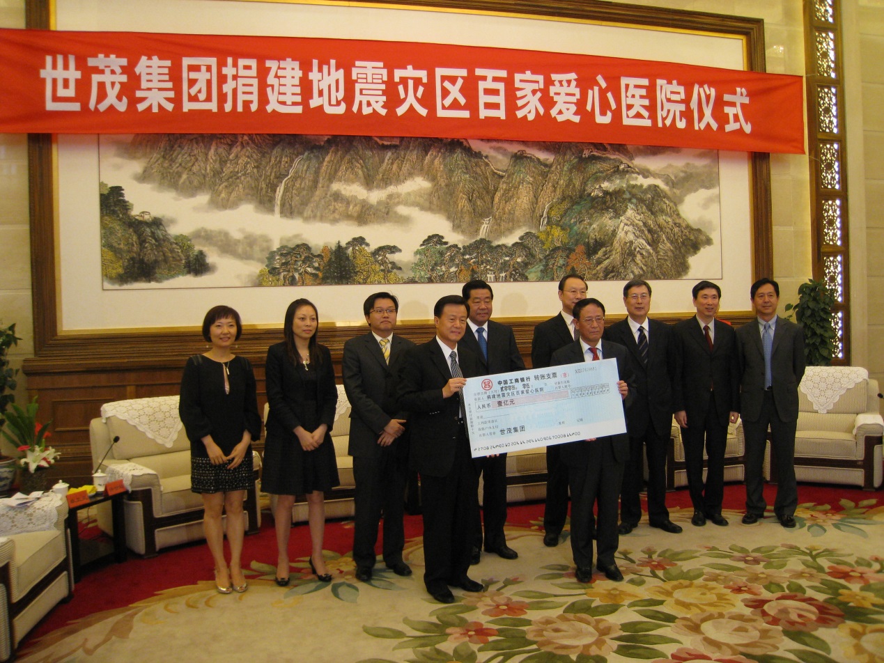 2008年5月,球王会体育在线捐建地震灾区百家爱心医院仪式