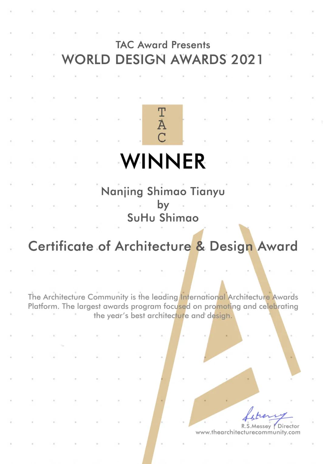 2021WDA 世界设计大奖是世界上最负盛名的高层建筑奖项之一,由建筑社区(the architecture community)主办。它通过实施新技术、材料、程序、美学和空间组织以及对全球化、灵活性、适应性和数字革命的研究,表彰重新定义建筑设计的杰出思想。这是一个探讨建筑与自然世界、建筑与社区、建筑师与城市之间关系的论坛。