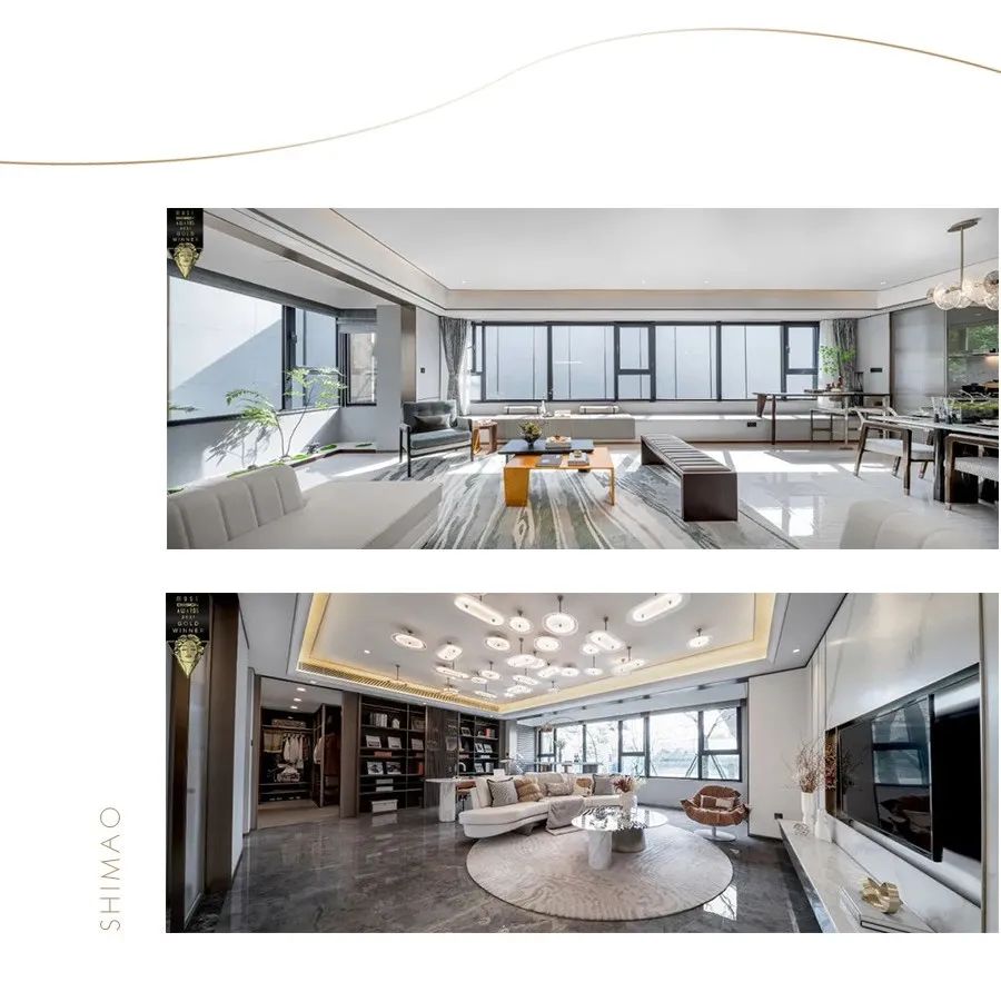 项目强调资源集聚带来的生活方式,可售居住业态占比低。同时洞察高端客户所需,以全球化个体的偏好为思考原点,在室内空间中更注重超越传统居住逻辑的体验迭代,全面释放尺度感与景观面。