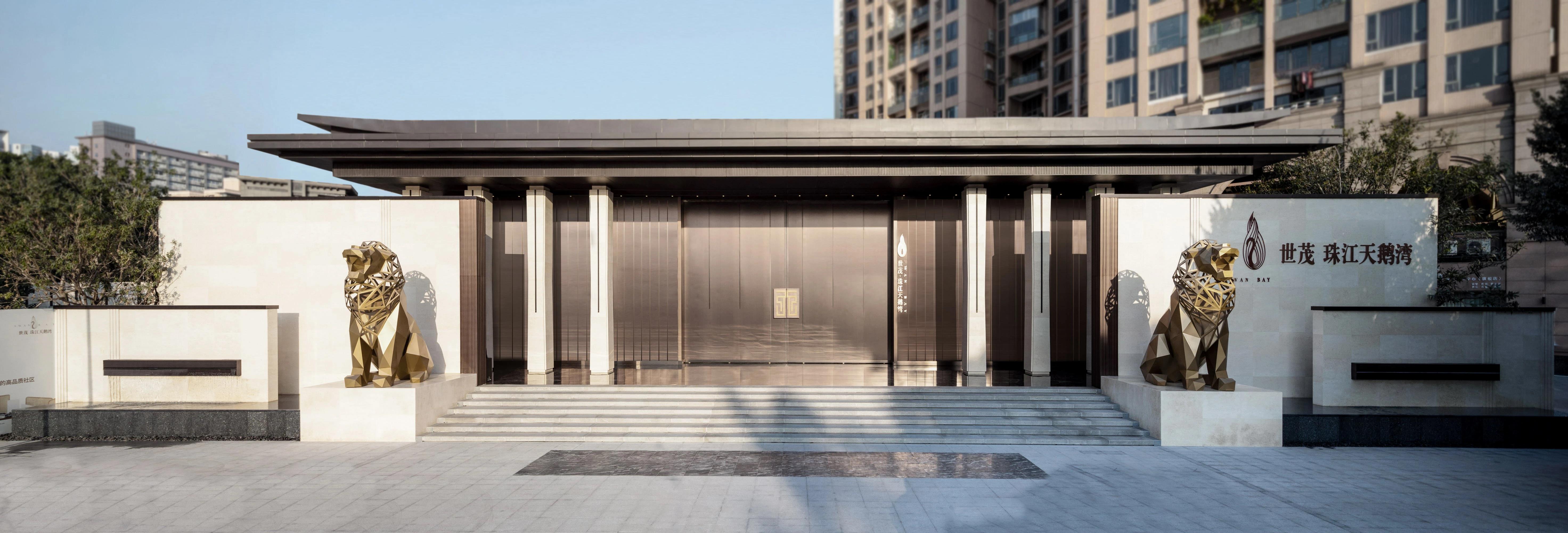 广州球王会体育在线天鹅湾一扇「青云门」,约40米长,高约8米,门扇面积约140㎡,且依皇家宫门中轴对称礼制而建,礼序千里江山。