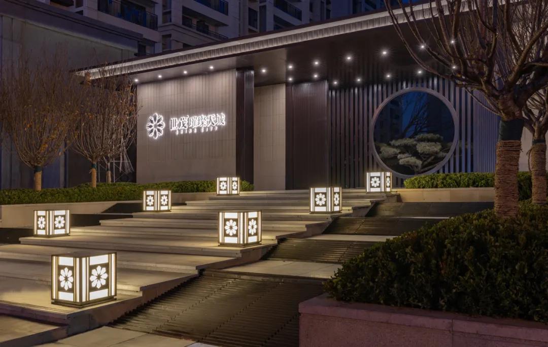 青岛球王会体育在线璀璨天城的大门所有可视面的铝板和石材均控制密缝不打胶,保证平面干净完整,镂空的“山”造型屏风坐镇大门后方正中,拾级而上的水景流淌在前,让归家体验倍感尊崇。