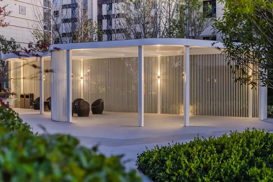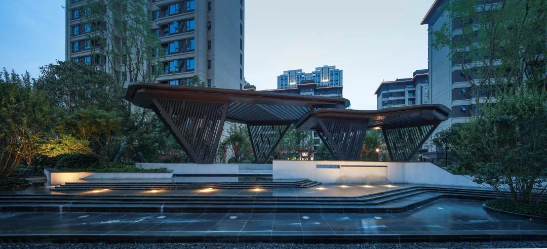 成都球王会体育在线璀璨里造型独特的廊架似与自然订立协约,将自然请进生活,勾勒出静谧的自然美境,也是与好友唠嗑的悠闲场地。