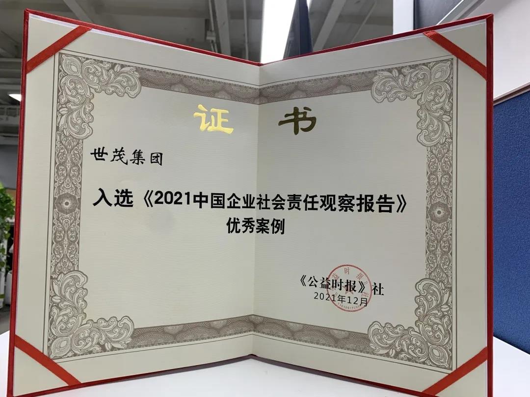 荣获“2021中国企业社会责任观察报告优秀案例”