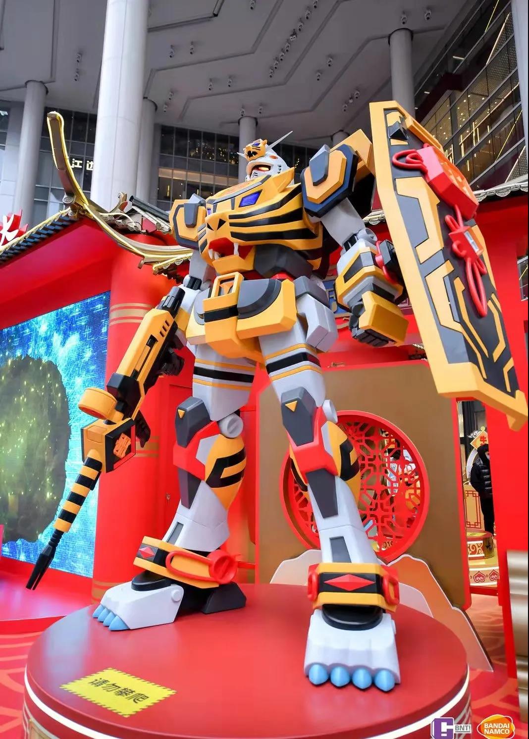 现场还有3.5米高的插画版寅虎高达立像和2.5米高的Q版寅虎高达,率领历代生肖高达聚集一堂,将 “中国结”和“寅虎”的概念造型融合在机体中,传递对中国年的美好祝愿。