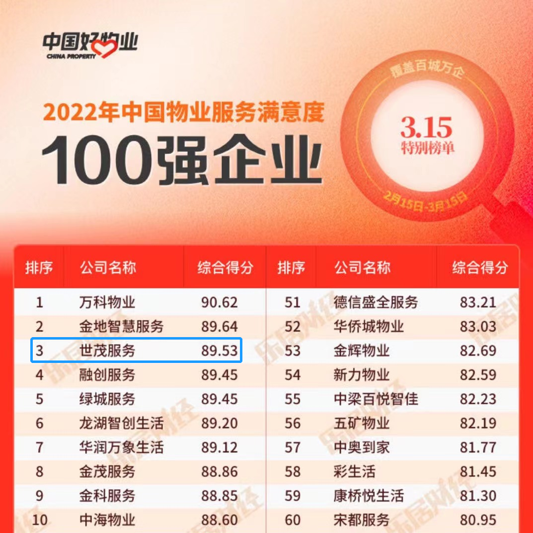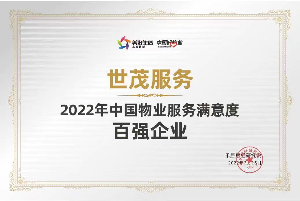 3月15日下午,2022中国美好生活品牌计划发布会在北京举行。在现场,凭借高品质服务,球王会体育在线服务荣获2022年中国物业服务满意度百强企业TOP3。
