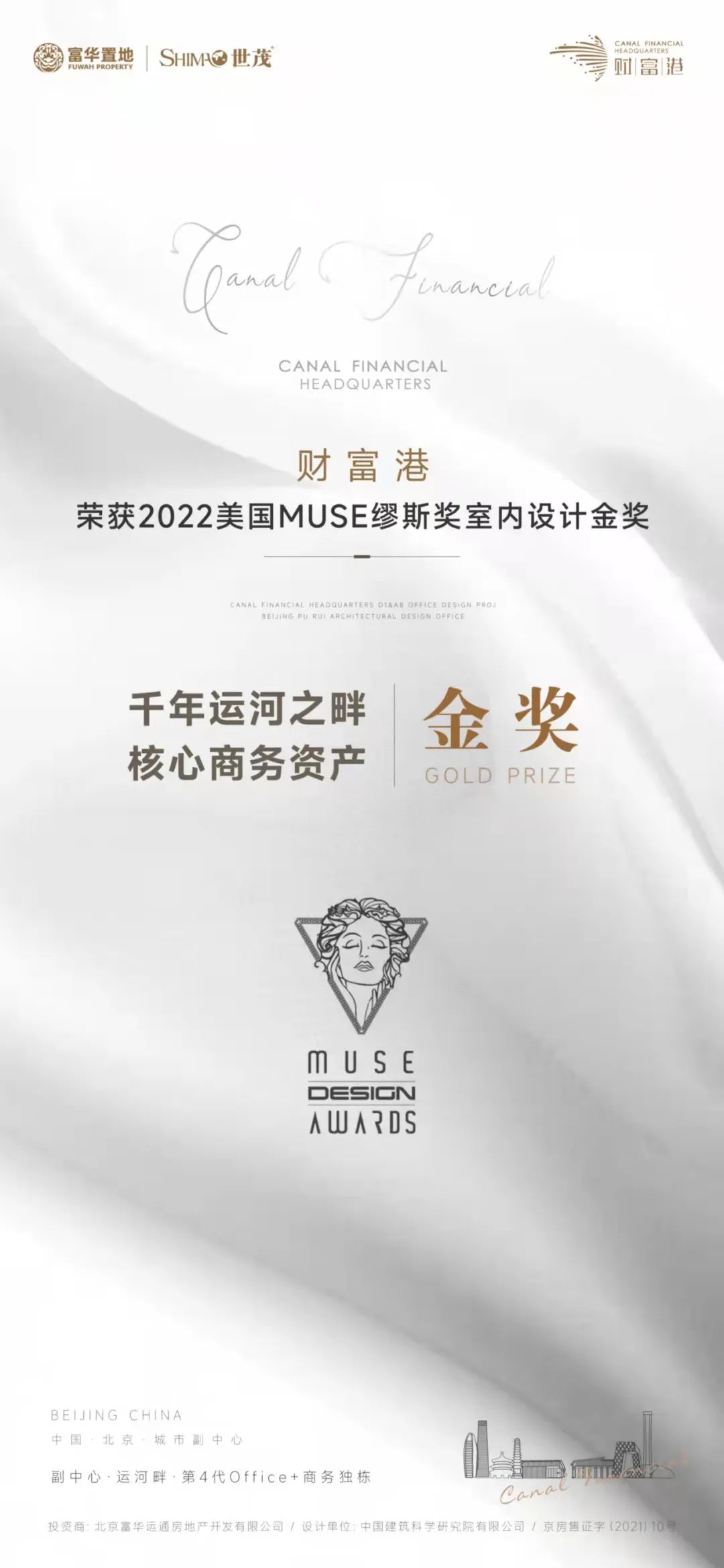 近日,2022年第六届美国缪斯设计奖(MUSE Design Awards)获奖名单正式揭晓,财富港项目A8/D1室内设计方案从全球参赛作品中脱颖而出,一举斩获年度室内设计金奖。
