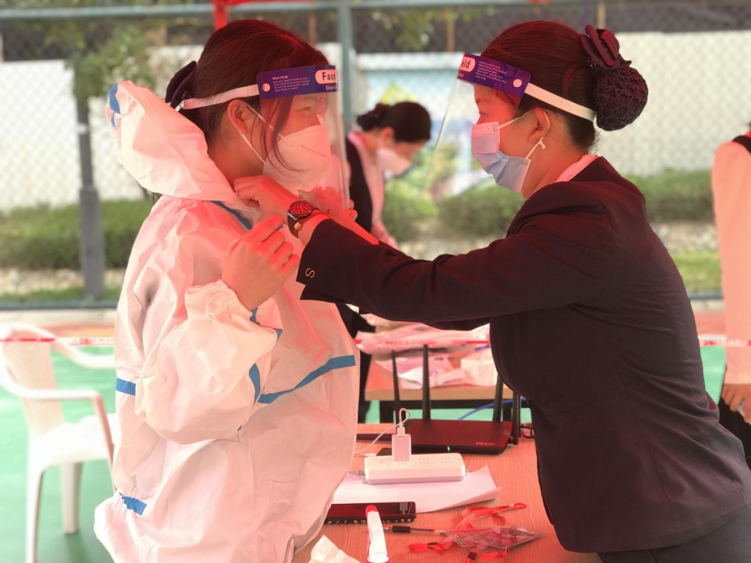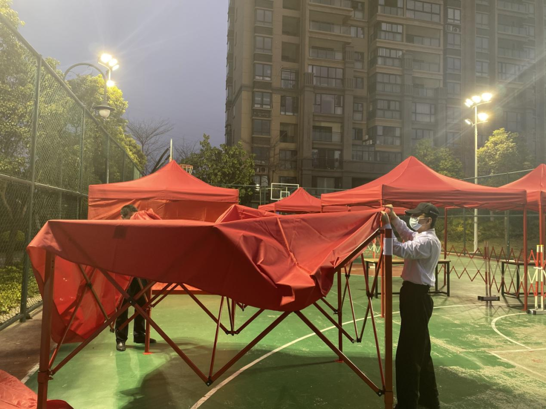 晋江球王会体育在线御龙湾、石狮球王会体育在线摩天城等众多大型小区快速同步设立核酸检测采样点,与社区街道紧密配合,积极协助完成采样现场,排队秩序维护、测温、身份核验等流程,有序高效组织业主与周边居民参与检测。