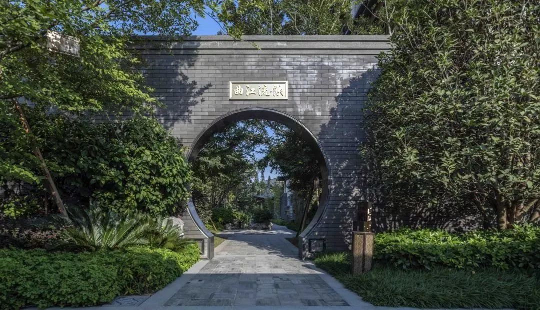 走到长庭深处,“曲江流饮”洞门似惊鸿一瞥,成了国风长安着墨最浓的一笔。门外,是步步环映,襟带相连的三进门仪,门内,是援引盛唐长安八大景观匠造的曲水兰亭。满园风月,流觞曲水,漫步于此,不经意一撇,即可收获园林美景的治愈。