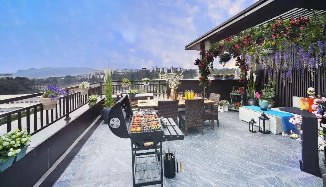 一方星空大露台,让居者多了个揽景拾光的去处,闲来无事,大可独自潜读、煮酒烹茶品人生或是亲友派对小聚,在爽朗户外,分享雅致闲乐时光。