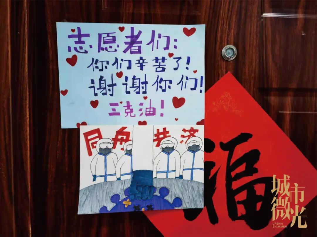 为表达感谢,居民们通过在门口贴感谢信的方式感谢朱丹等志愿者的付出。在大家的共同努力下,小区成了嘉定区第一批防范区,回归正常生活指日可待。朱丹却说“即使疫情结束,我们团队也不解散,未来希望能给大家带来更多的服务。”