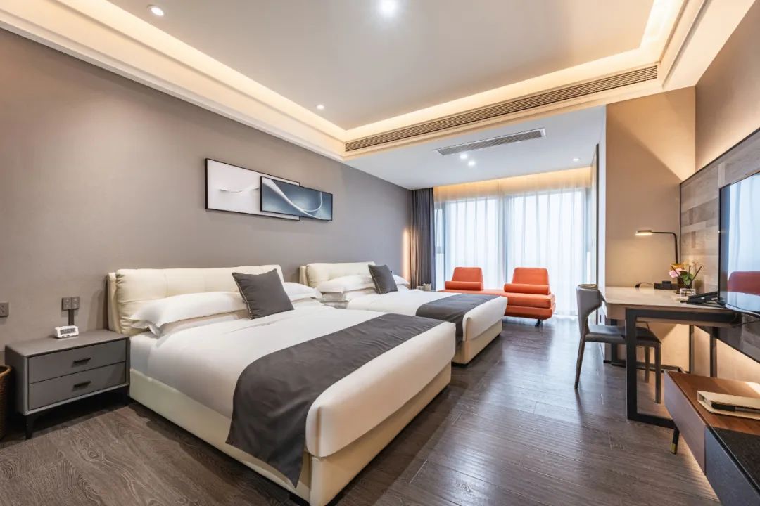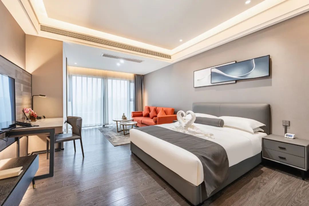 西咸文创世御酒店拥有92间现代舒适的客房及套房,全景落地窗将沣西河畔优美的自然风光尽收眼底。8种房型可满足从家庭出游到商务差旅等不同需求,客房内配置专业的门铃可视系统等智能家居用品,同时也提供迷你吧、洗衣机等生活电器与用品,在惬意自在的氛围中为宾客编织品质旅宿时光。