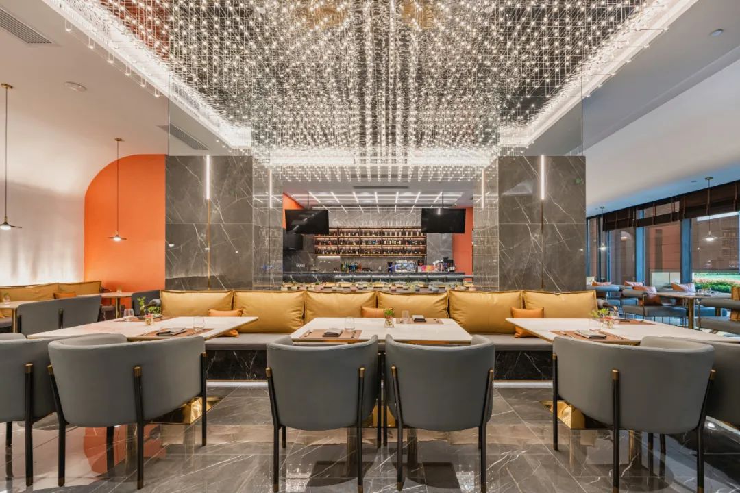 值得一提的是,晚上九点半后,餐厅将摇身一变成为时尚酒吧,成为朋友小聚、放松休闲的绝佳去处。大气典雅的中餐厅“御萃轩”,在粤菜中融入陕川湘菜特色,以及当地美食文化与精品海鲜,为宾客开启多元化的饕餮之旅;8个独立中式包间更是商务宴请的理想场所,180度全景落地窗使宾客在用餐的同时也可欣赏沣西美景。以中式古典装饰风格打造的大堂吧“一茶一阁”,优雅尊贵的氛围不仅可进行商务洽谈,亦是闺蜜相约品尝精致下午茶点、享受午后悠闲时光的不二选择。