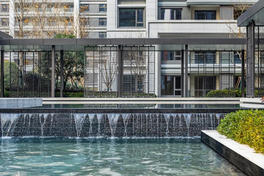 约150米中央水轴,传袭《富春山居图》空间规则,滩、瀑、溪、涧、潭、渚水系带来沉浸式观景互动体验,一场高雅社交空间,满足美好生活体验。