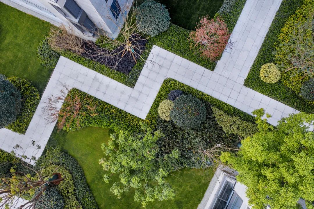 走在一段婉转开合的白石板路上,两侧绿植随四季更替变换着颜色,在微光的照射下,安静且唯美,移步异景,感受着自然园林的雅趣,将当代士族潇洒态度和浪漫主义的审美体现无疑。